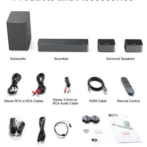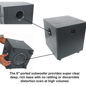 Rockville HTS820 1500W 5.1 Channel Home Theater System with 8″ Subwoofer, Bluetooth, USB, Includes Remote and Speaker Mounts – Perfect for Movies, Music, Karaoke