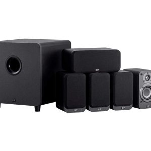 Monoprice HT-35 Premium 5.1-Channel Home Theater System – Charcoal, with Powered Subwoofer, Low Profile Speaker Grilles, Secure Mounting Option, Black (139357)